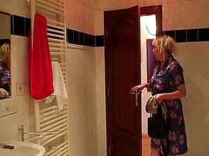 Alte große schöne Frau Mama schraubt Stiefsohn im Badezimmer
